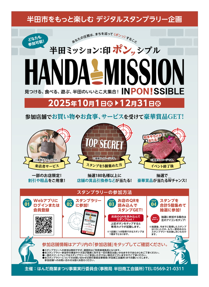 はんだ商業まつり デジタルスタンプラリー『半田ミッション:印ポンッシブル』が始まります!