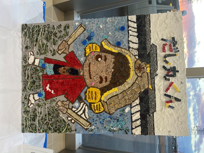 半田市から出た廃材を使ってモザイクアートで作成した半田市観光マスコットキャラクターだし丸くんを展示します。